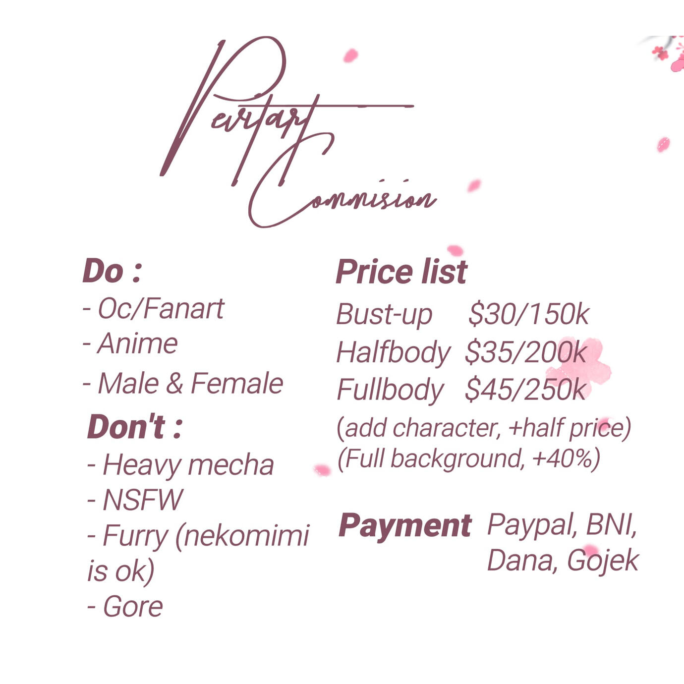 ● I have the right to reject any order that I do not feel comfortable drawing for any reason.2. PAYMENT